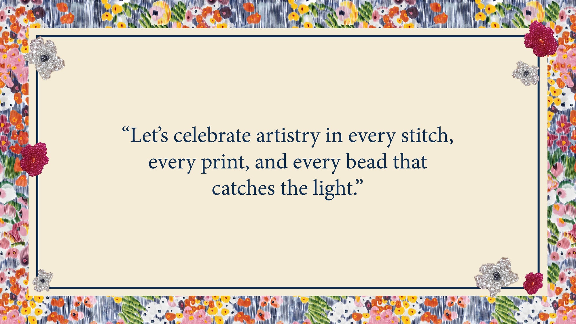 This collection blossoms from the harmony of florals and beadwork. With every delicate, hand-beaded flower, we invite you to wear a piece of art that sparkles with life and color.